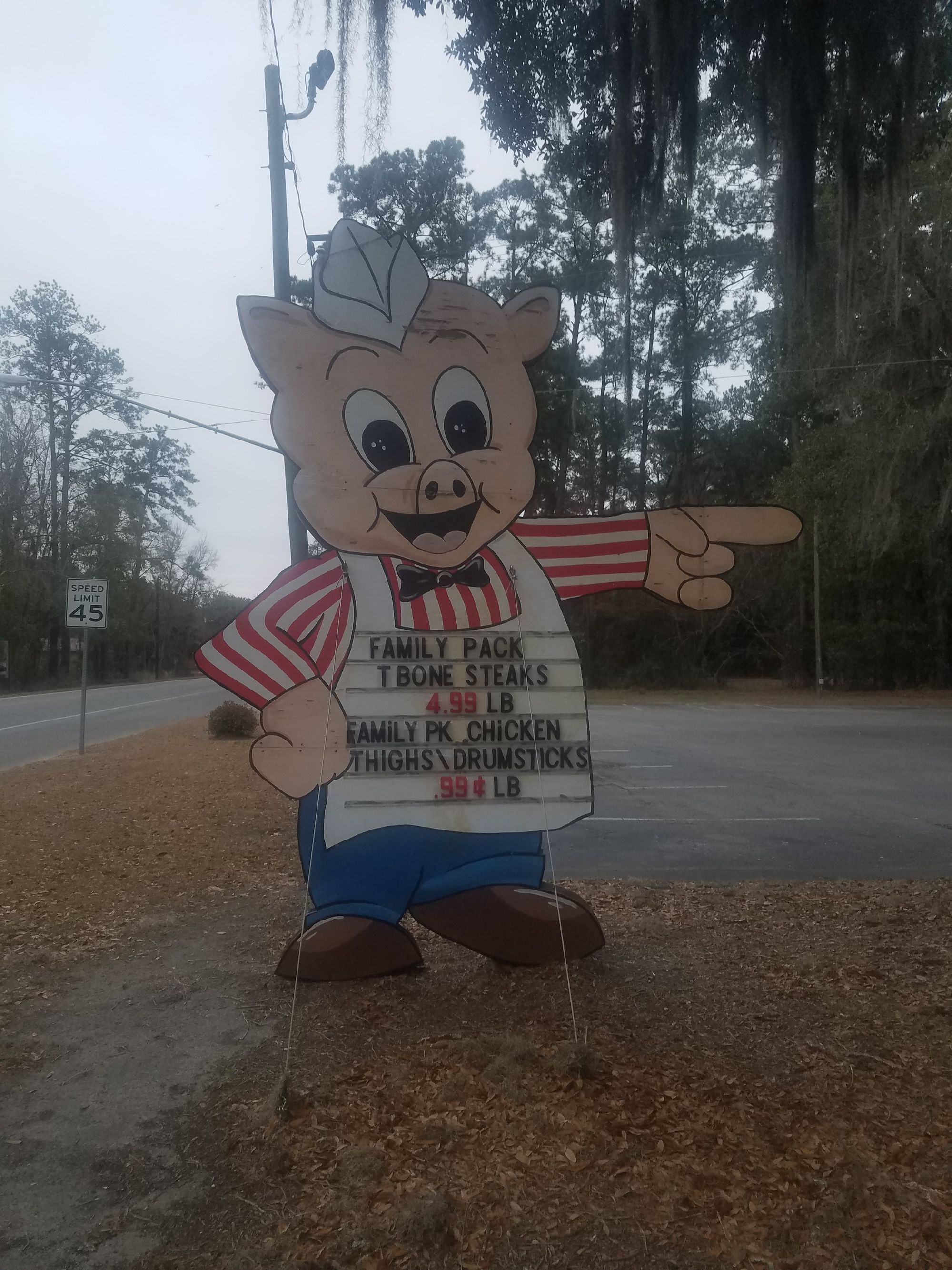 Hi everybody. It's Sunday afternoon* in Townsend, Georgia, which you likely haven't heard of. We're staying in a little log cabin inside an RV park. There are few restaurants nearby, so we'll be getting dinner from the Piggly Wiggly across the street. They had a pretty good frozen section - I have m