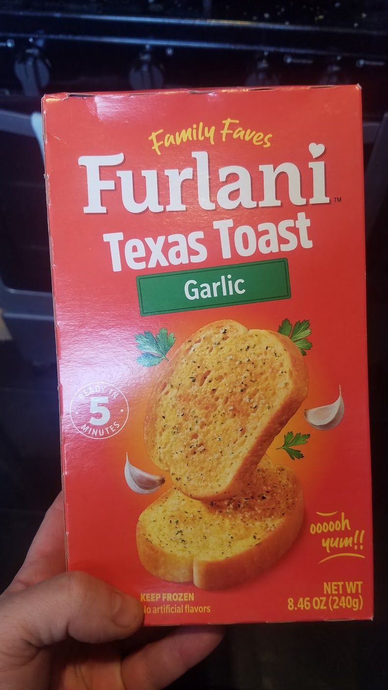 Downside: There are only four (4) modest slices of garlic bread in this Eggo-sized package. Skimpy.