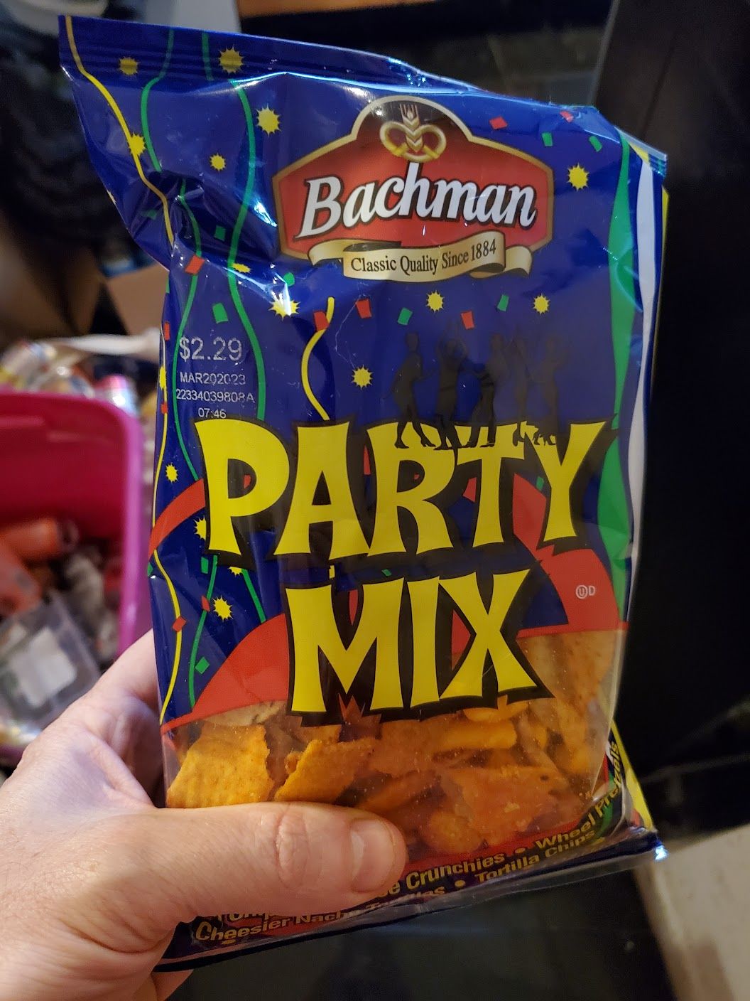 I love this shit: BBQ Corn Chips, Cheese Crunchies, Wheel Pretzels, Cheesier (?) Nacho Tortillas, and Tortilla Chips. IYKYK.