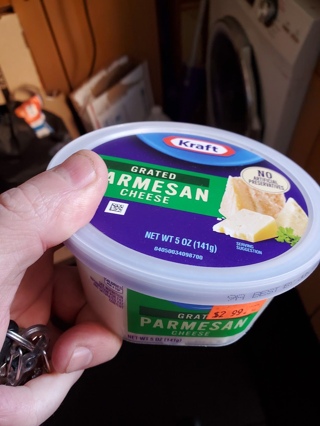I suspect that Kraft is feeling the heat from smaller parm purveyors who sell their wares in deli containers like this. Is this refrigerated parmesan the exact product that they sell in shelf-stable green tubes? Hard to say, but I bought it.