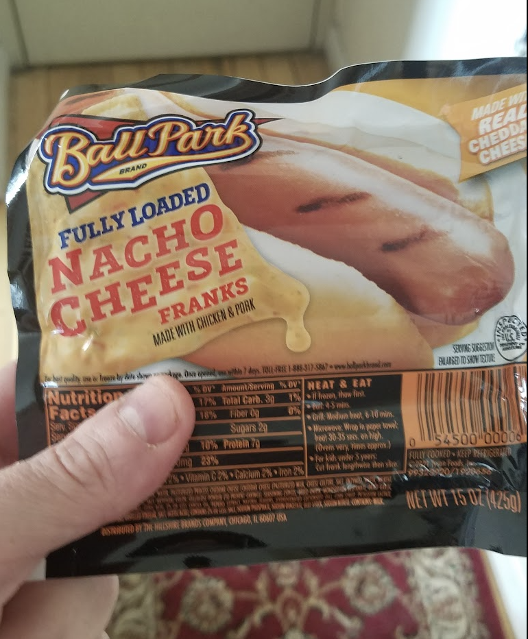 These duders didn't squirt nacho cheese like I'd hoped, Gushers of the wiener world. (I've been waiting all week to say that.) They do have like, nacho spicing, so I was confused about what toppings to use. I asked Abby for her thoughts, and she suggested pickled jalapeños and sour cream — suspiciously similar to what Nathan's recommends.