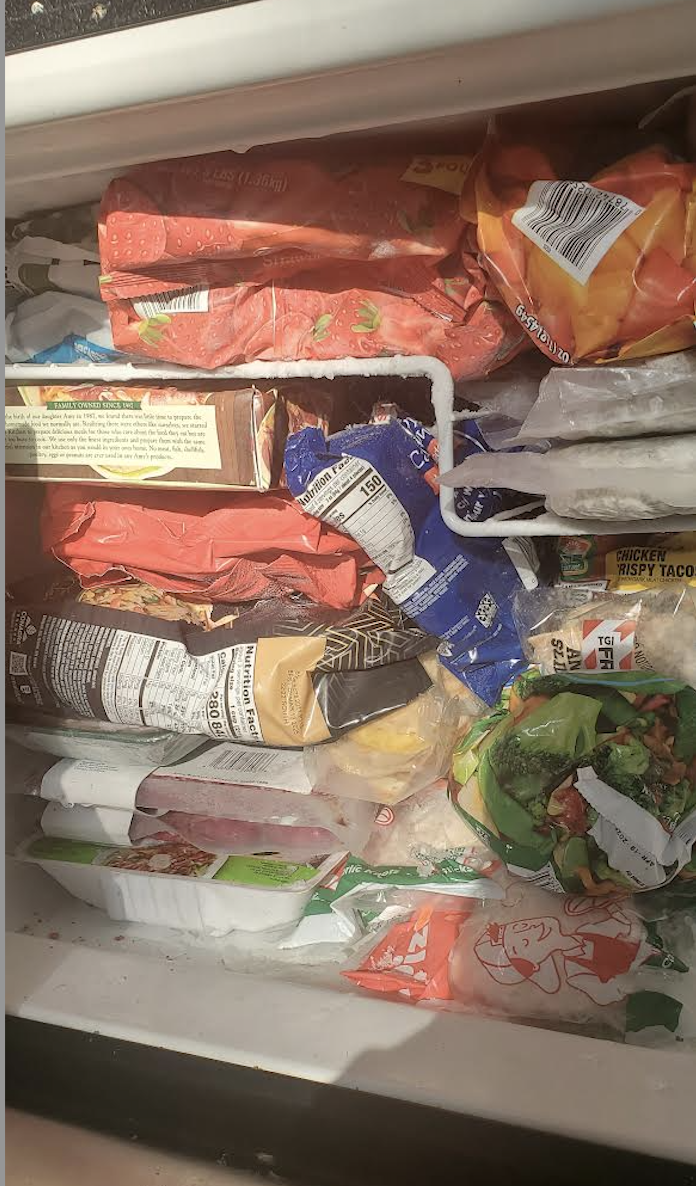 As you can see, our freezer is beyond capacity; Freezer Two and the fridge are also ailing. See, the surplus grocer is going through an event we see like once or twice a year, when it acquires a motherlode of premium perishables at a scale that's hard to keep up with. Mala said he's stressed out because their walk-in freezer is at peak capacity: "It's crazy! Food up to here," he said, gesturing toward the ceiling.