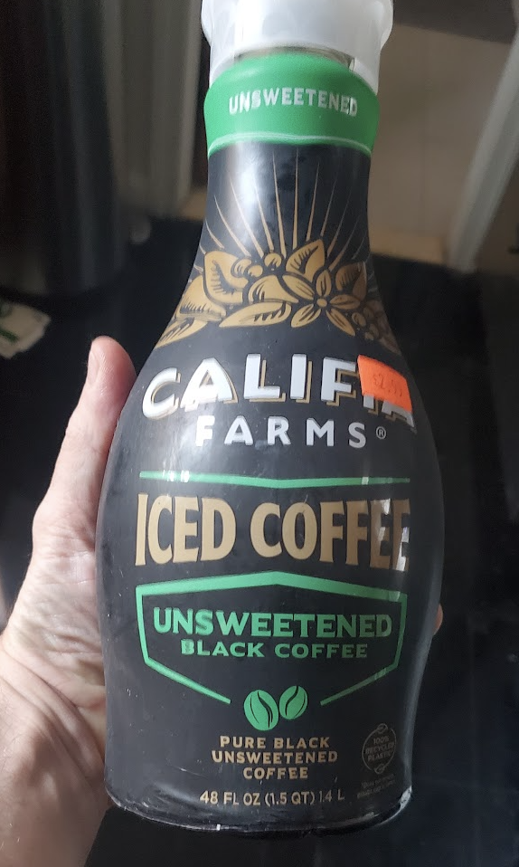 Abby is a bit fussy about her iced coffee. She says that "cold brew" is simply too strong, and makes her act kookoo crazy (like when Boomers talk about modern cannabis). I honestly can't tell the difference between cold brew and regular iced coffee, but whatever. I found this rare bottle of non-cold brew at the surplus grocer and brought it home proudly, like a cat with a dead mouse in his craw. (?)