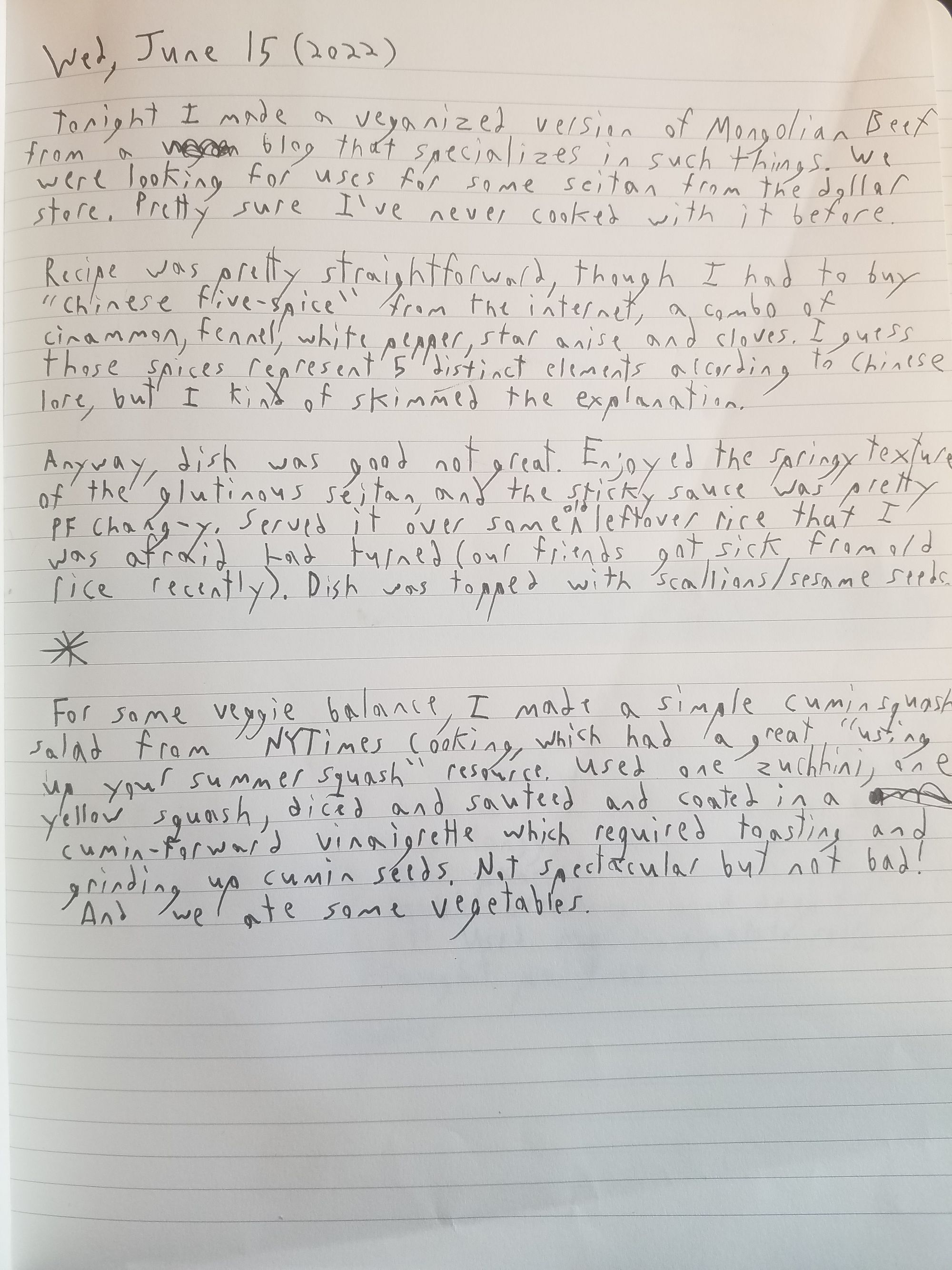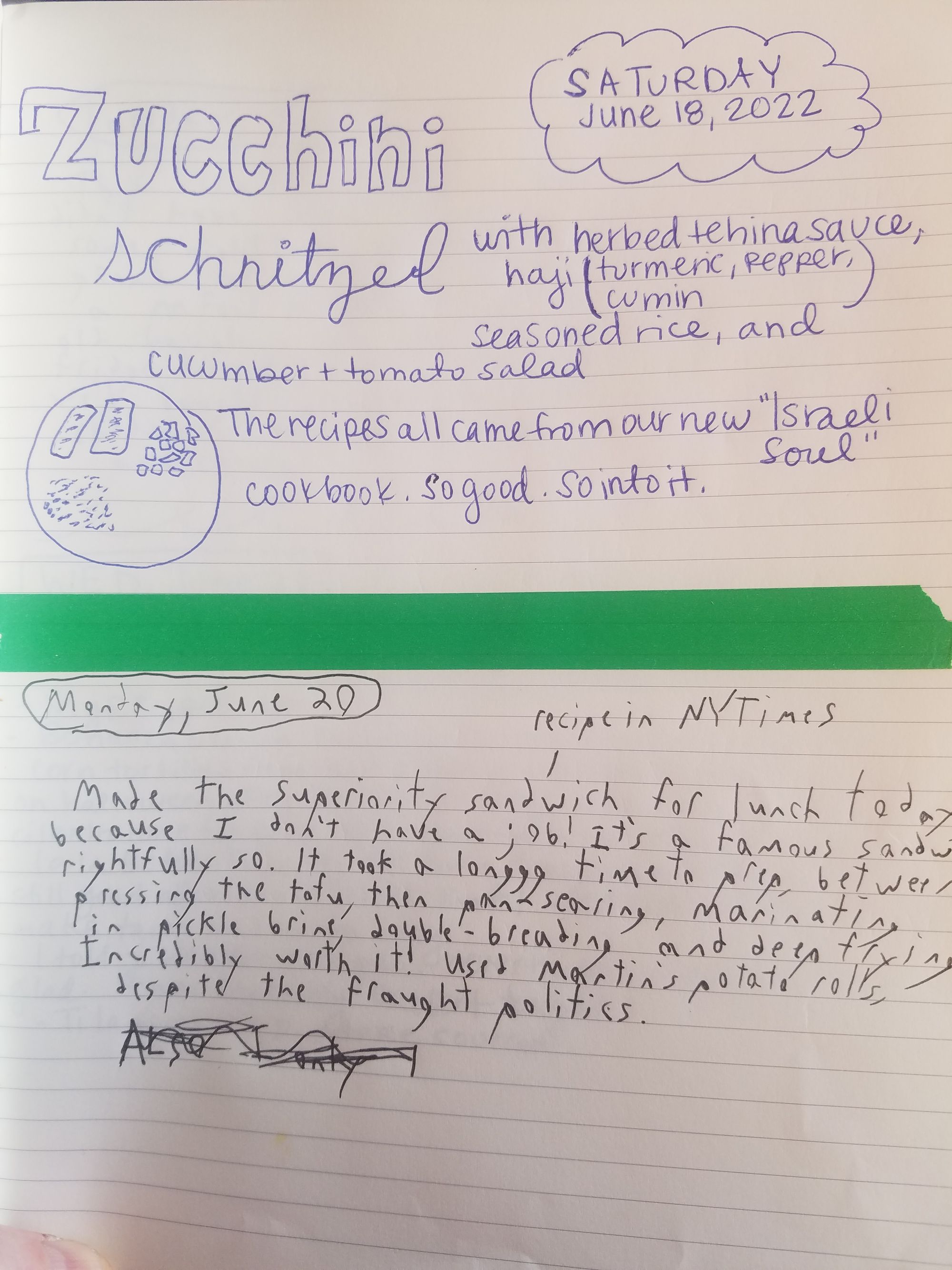 Hi everybody. Hard not to feel extremely bleak about our future — I'm guessing most of us are on the same page here. I'm going to share the first few entries in our cooking diary, then see you next week.