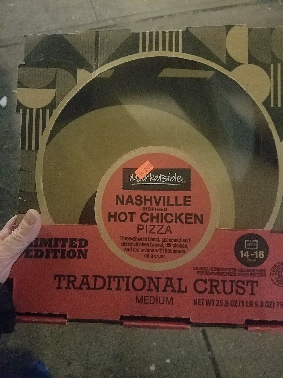 I forgot to take a picture of this before we ate it, so here is the box on its to get recycled. Abby and I had a marked disagreement on this one! Unlike many allegedly spicy things (Taco Bell hot sauce is basically thin marinara), this pizza packed a legitimate wallop. I liked that, but Abby did not, so I ended up eating most of it. Also notable: They added chopped-up dill pickles as a topping.