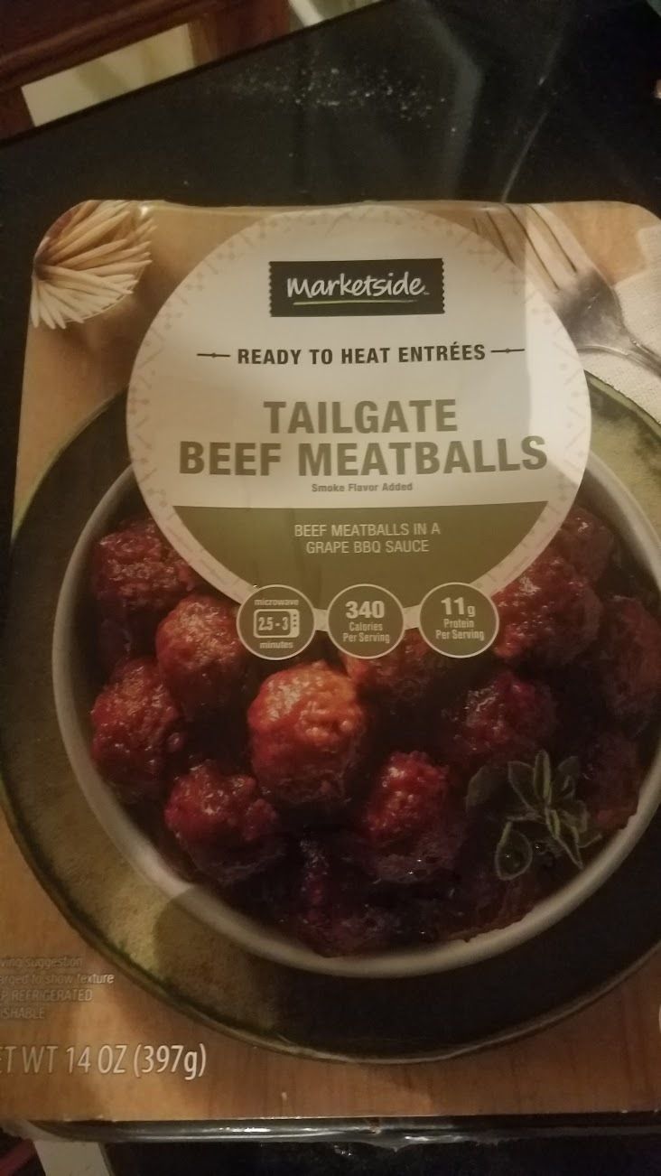 I did NOT notice that these meatballs came in a "grape jelly BBQ sauce" so guess who spent precious life moments scrubbing them off in a colander? Worth it, though: They were a delicious pan-grilled side dish.