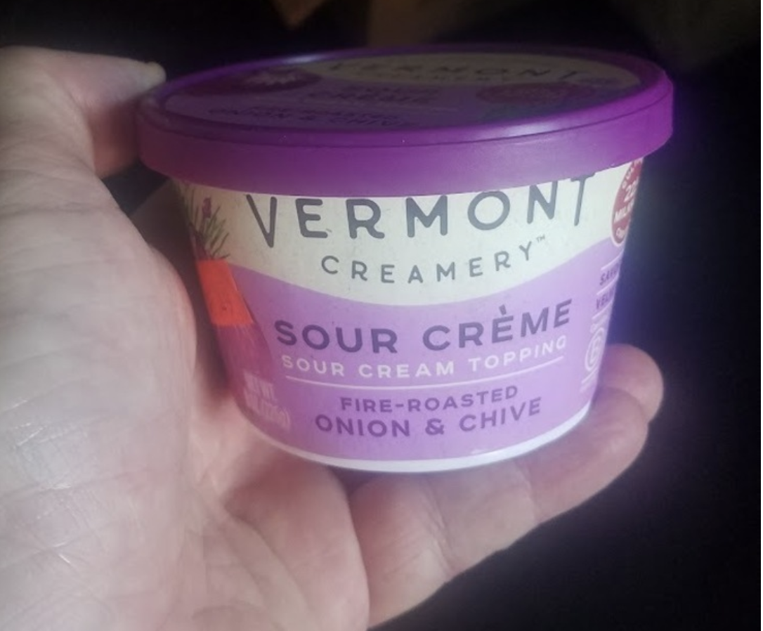 This is some THICC sour cream I'll tell you. If I turned the container upside down it would honestly not pour out. We solved this culinary quandary by adding like a tablespoon of half and half to each portion. Even made thinner, it was a rich and decadent product.