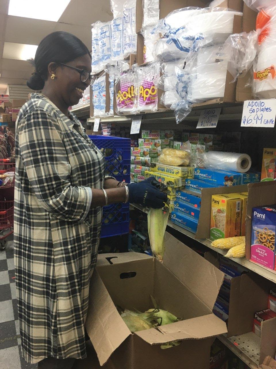 Pictured above is Nde, our favorite of the store workers. She has really taken a shine to Abby, possibly because they both like dancing to FM radio and laughing when there isn't a joke. In this photo, Nde is shucking corn in the storage bag section of the store. We didn't ask why she was doing this; it made sense until we got home and really thought about it.