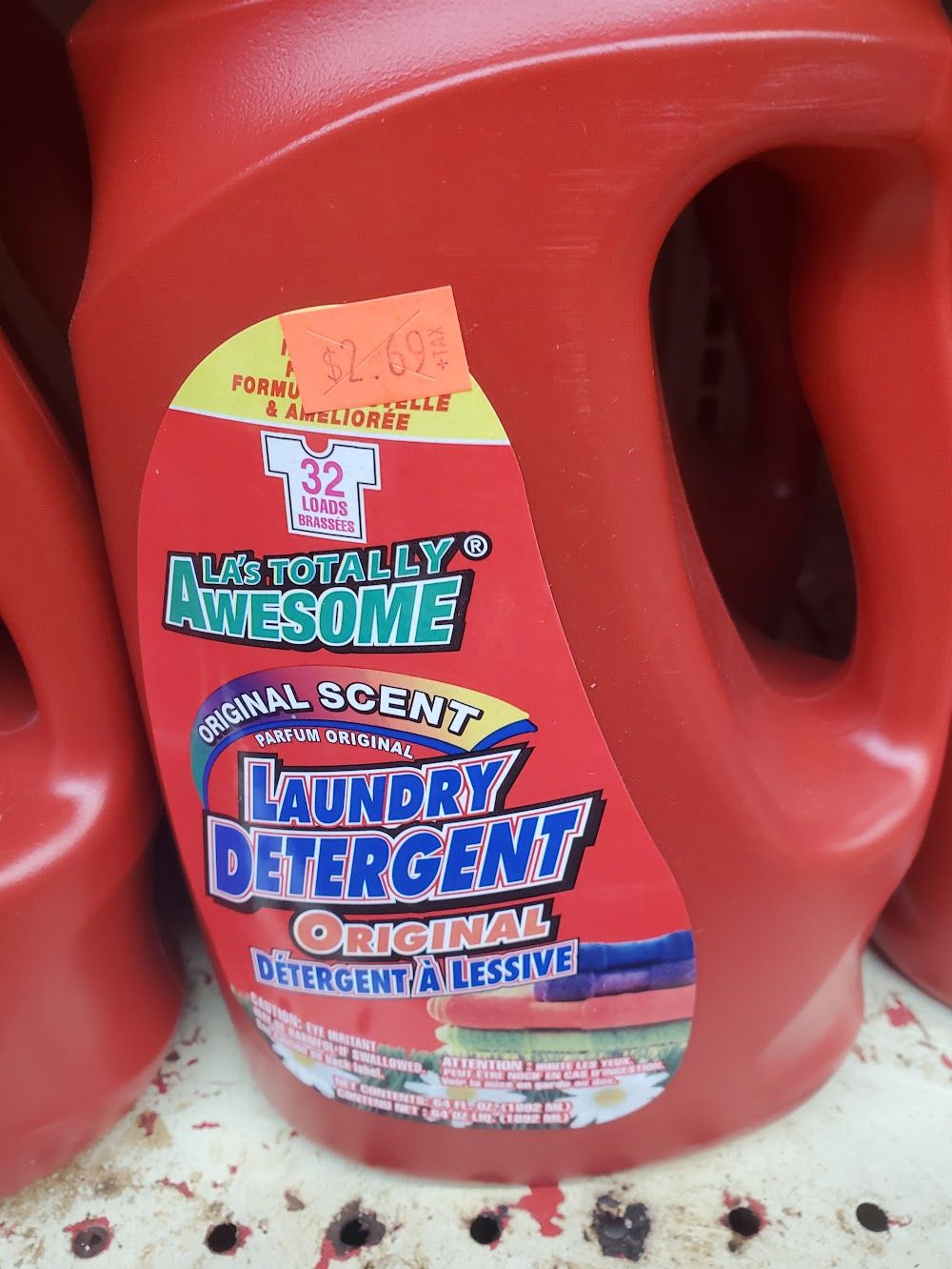Meanwhile I am tickled that there's a cleaning chemical company called "LA's Totally Awesome." I wanted a good explanation for the name but their website is not exactly forthcoming. The surplus grocer also carried this company's line of industrial degreaser.
