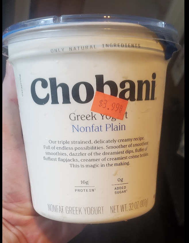 You know how eggs have become a popular economic indicator? I vote for this stuff, which Abby uses for her daily workout smoothies. At a regular grocery store, the prices have spiked in the last year or so - you can't find any Greek yogurt for less than $7.50! The surplus grocer usually keeps some in stock, maybe 60% of the time.