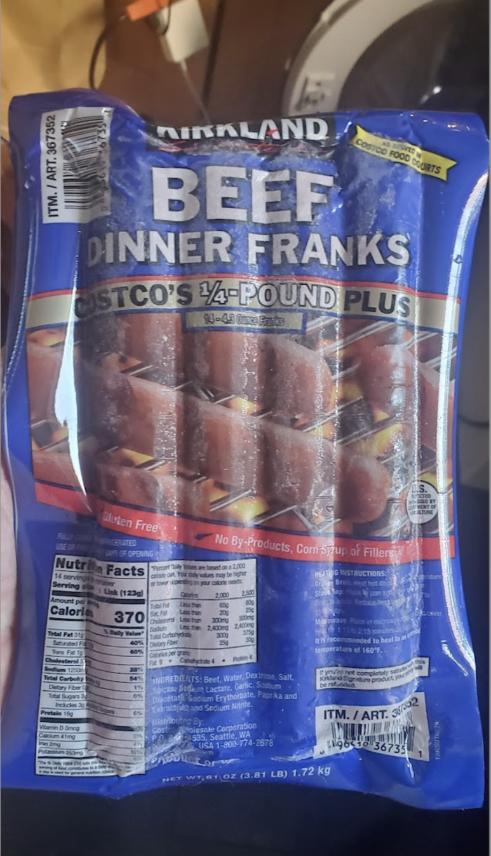 These are the legendary hot dogs I never get to eat because I'm not allowed inside Costco! (There was no incident, I'm just not a member.) If you look closely, you'll see this is almost 4 pounds of dogs.