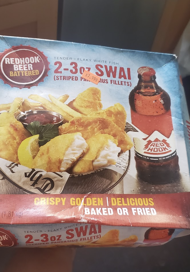 This is one of those items that isn't typically sold in stores - it's intended for restaurants/food service (which is why there isn't really a brand name.) We noticed something funny: They called them striped pangasius fillets, which sounds very fancy. But striped pangasius is just another word for swai, which is another word for regular old catfish.