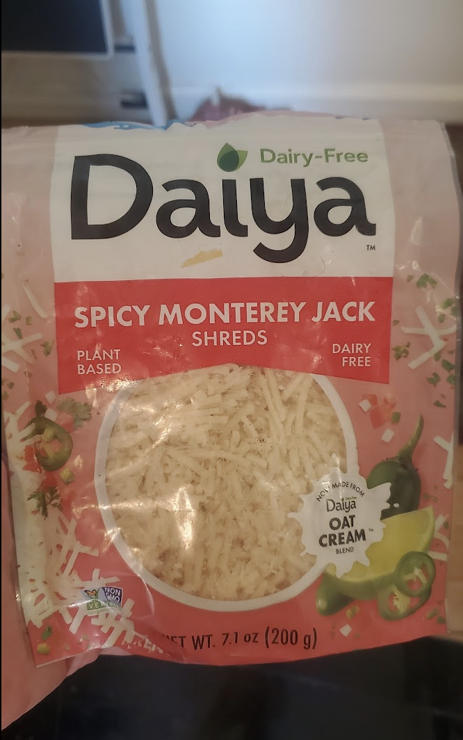 Spoiler: Even mixing this with real Monterey Jack was not enough to cover up its bizarre, earthy mouthfeel. Plus it turned gray when it melted and shellacked our tacos like rubber cement. We did not make it through the bag.