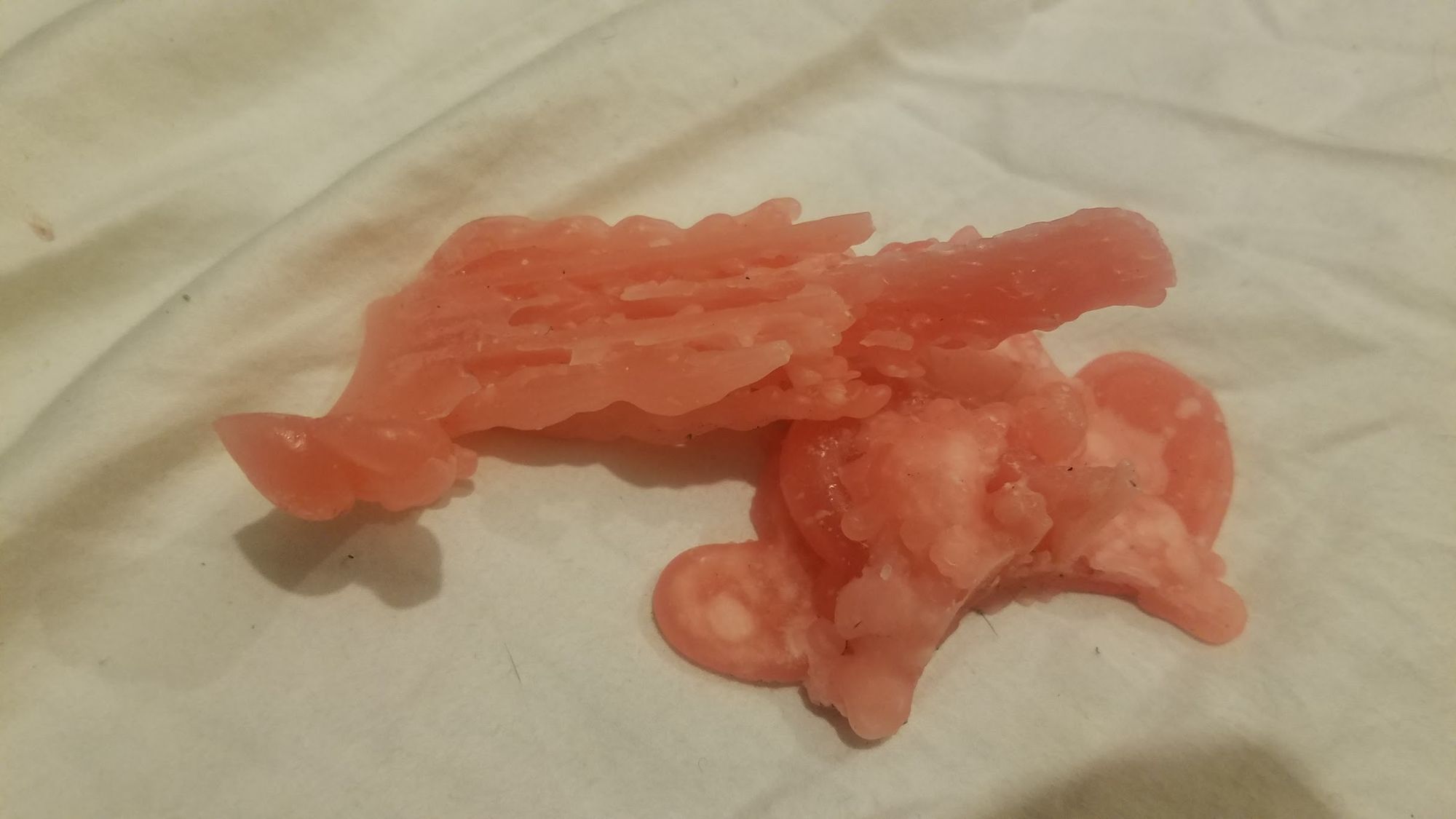 3. I broke one of my devotional candles and the wax dripped all over the floor. I'm now feeding bits of the spilled wax into other candles. Vaguely obscene: