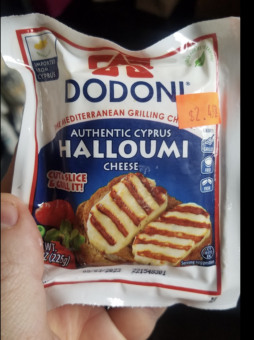 I didn't know halloumi cheese until I met Abby, who used to work at a tech startup in Berlin. She developed a taste for halloumi as a post-bar takeout treat, sliced and grilled. It's really good! My former coworker Tina lamented she could never find it in North Carolina, unless she spent a million dollars at a specialty grocer. Got this one imported from Cyprus, for a mere $2.50.
