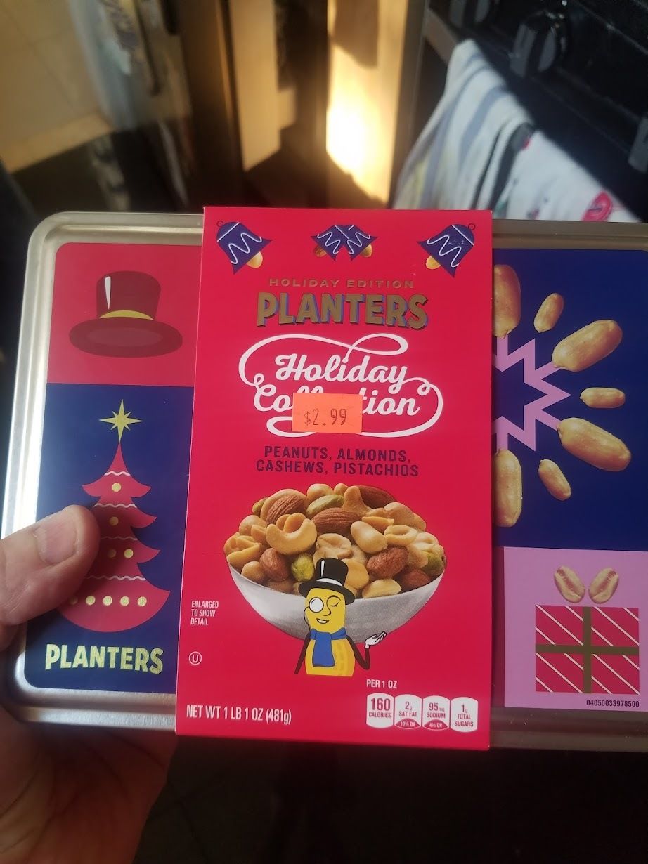 Epilogue: After I bought the holiday sampler Abby noted she had already bought the same exact item. It was hidden under some tortilla chips on top of the fridge. "Aw nuts," I said.