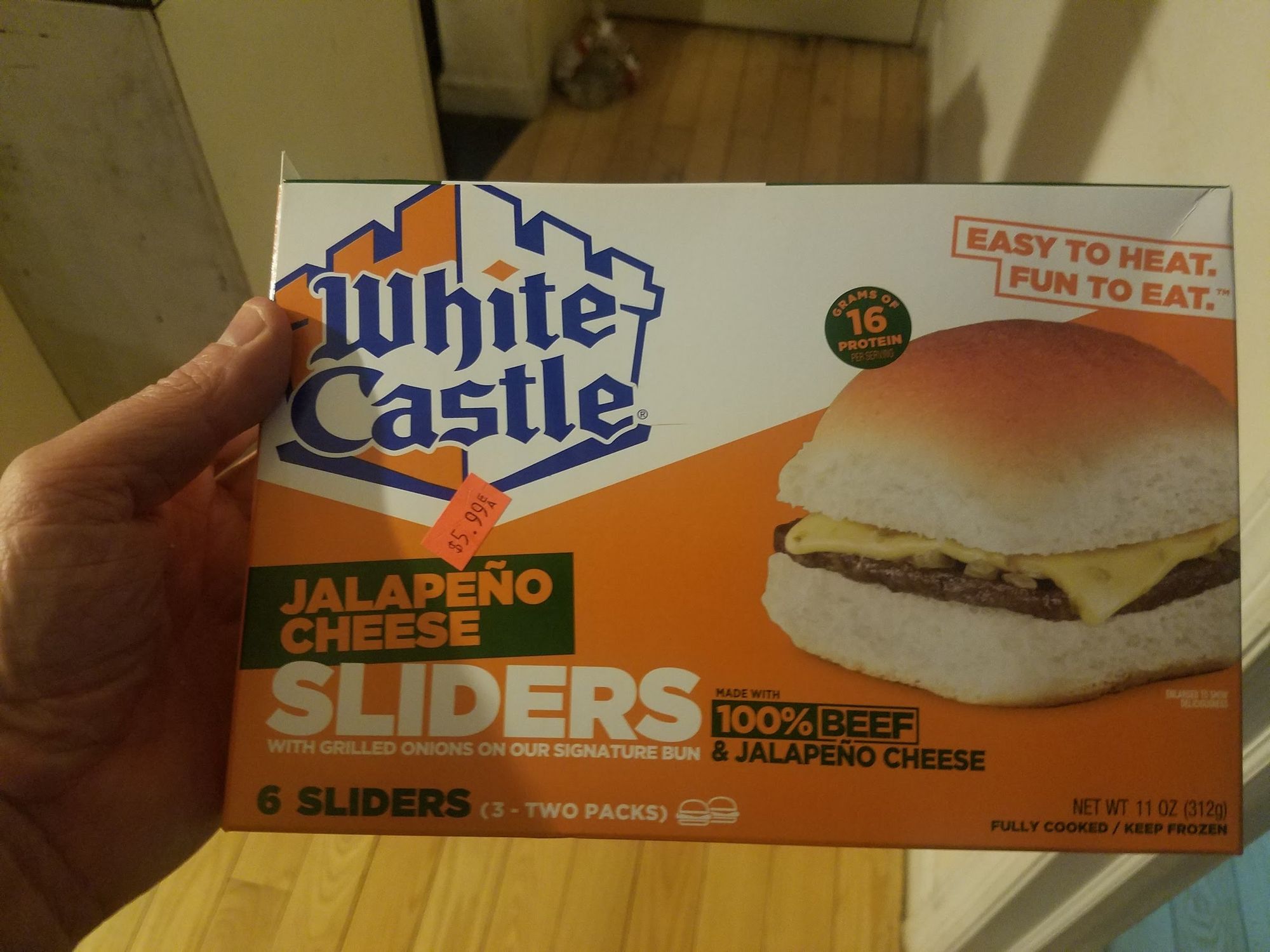 Also: This box cost six bucks! A buck per slider, not a bargain. This is a recurring problem—I assume surplus grocer prices will be a steal, so I don't focus on the price tag. Usually it works out, but from time to time I get White Castled.