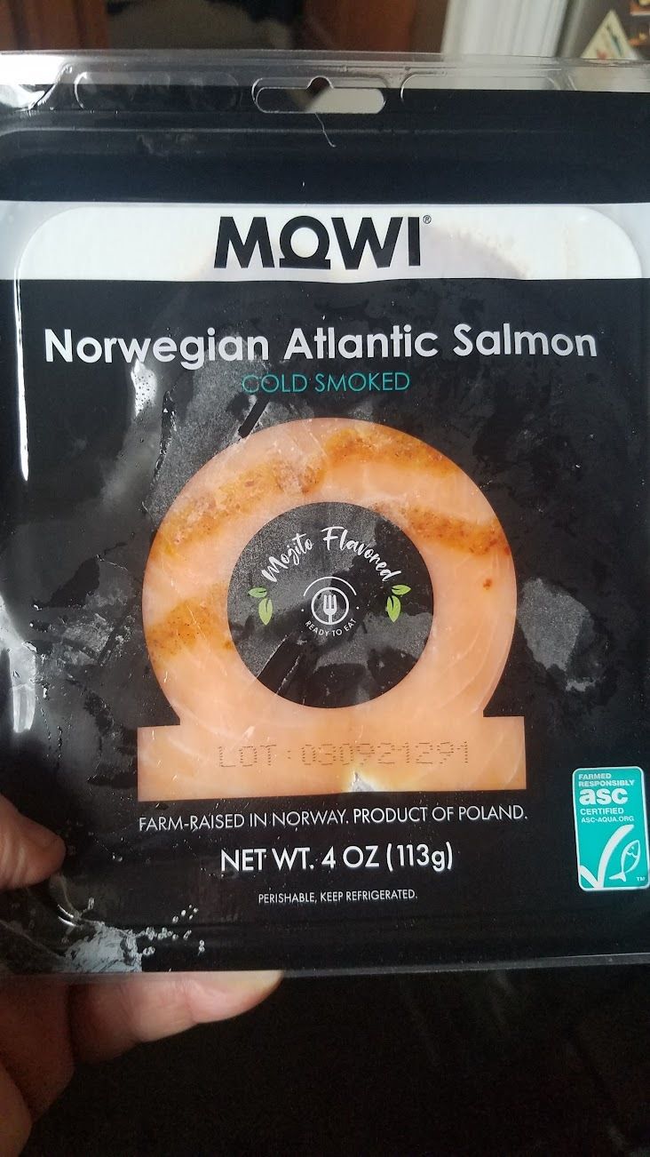 This is a weird salmon brand: Its website is all about record earnings and shareholder value. Why is the o in Mowi so wack? More importantly, why is this product mojito-flavored? Brown sugar and rum are prominently featured on the ingredient list. It tasted pretty normal on a bagel, but I suspect the unwise mojito branding is why it ended up at the salvage grocer for $3. (Please note what Mowi thinks every kid wants on Halloween.)