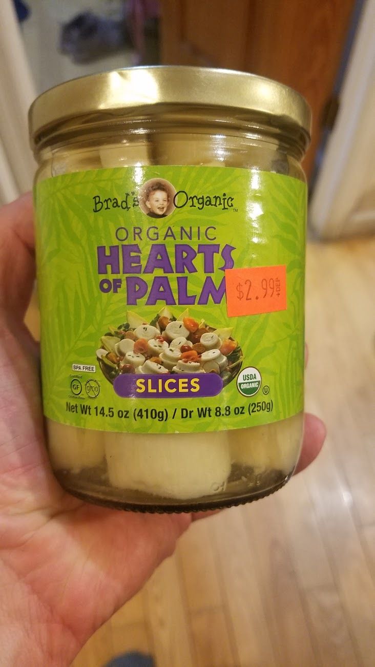 This week I tried making a zesty little spinach salad with fried onions and hearts of palm as a topper. Except, we bought this product a long time ago, maybe more than a year? The lid was thoroughly fused on, and none of the typical opening tricks would work.