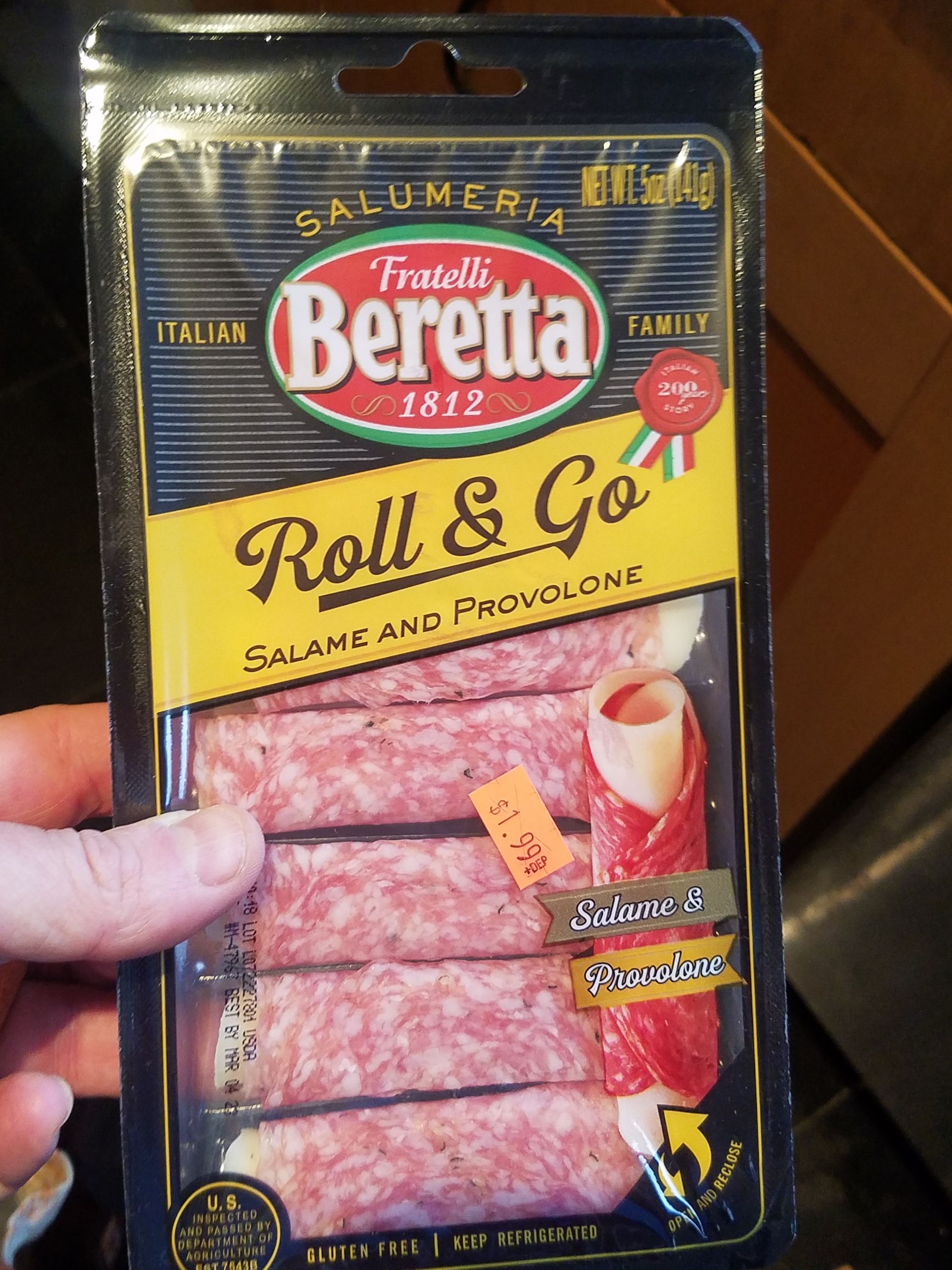 These photos are enormous! I need to tweak my settings for next week. Anyway I just bought these salami roll-ups and Abby started chanting "Roll and Go!" Then she said in a bad mafia accent: "Nyah I'm gonna smoke 'em like a cigar!" So that's what's happening over here this morning.