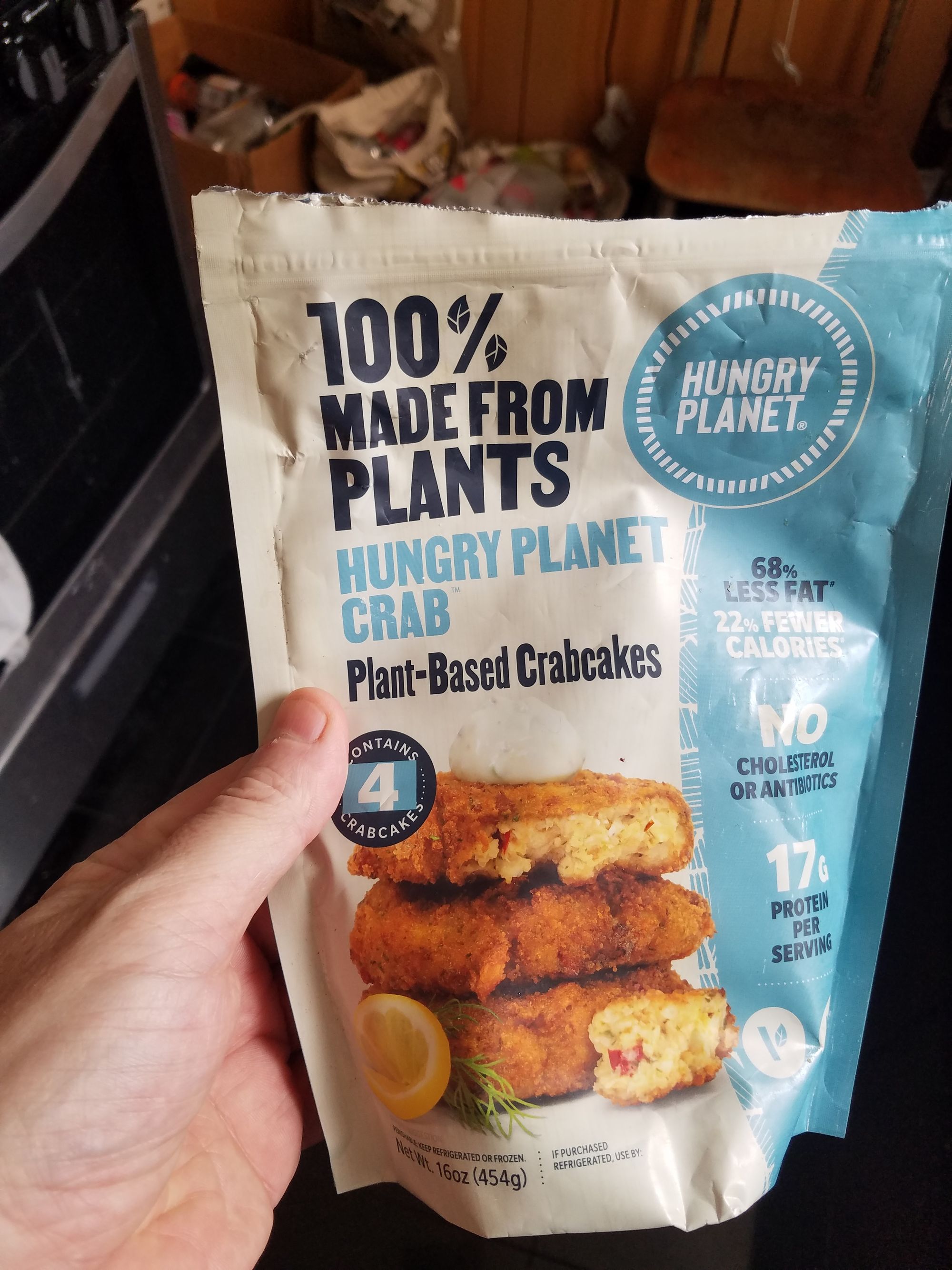 I pan-fried these last night and put 'em on toasted potato rolls with remoulade, pickles, tomatoes and greens. Fairly tasty, but I couldn't outrun Abby's principled opposition. She doesn't like fakery from companies like this, creating a false hierarchy where meat/fish need to be emulated and replicated. "Just call it a plant patty!" Abby protests, in between bites of her delicious dinner.