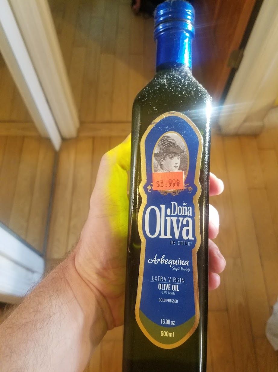 This brand is so idiosyncratic and close to our hearts. Doña Oliva is a Chilean olive oil company that may not even exist anymore. Yet the surplus grocer ended up with massive amounts of its product, enough to be the only olive oil we've used throughout the pandemic. We've grown so attached, in fact, that I made sure Alex would include Doña Oliva in the Haul logo. Sadly we only have a few bottles left, and will have to start using normie olive oil soon. (Side note: Our stockpile is surely rancid, no?)