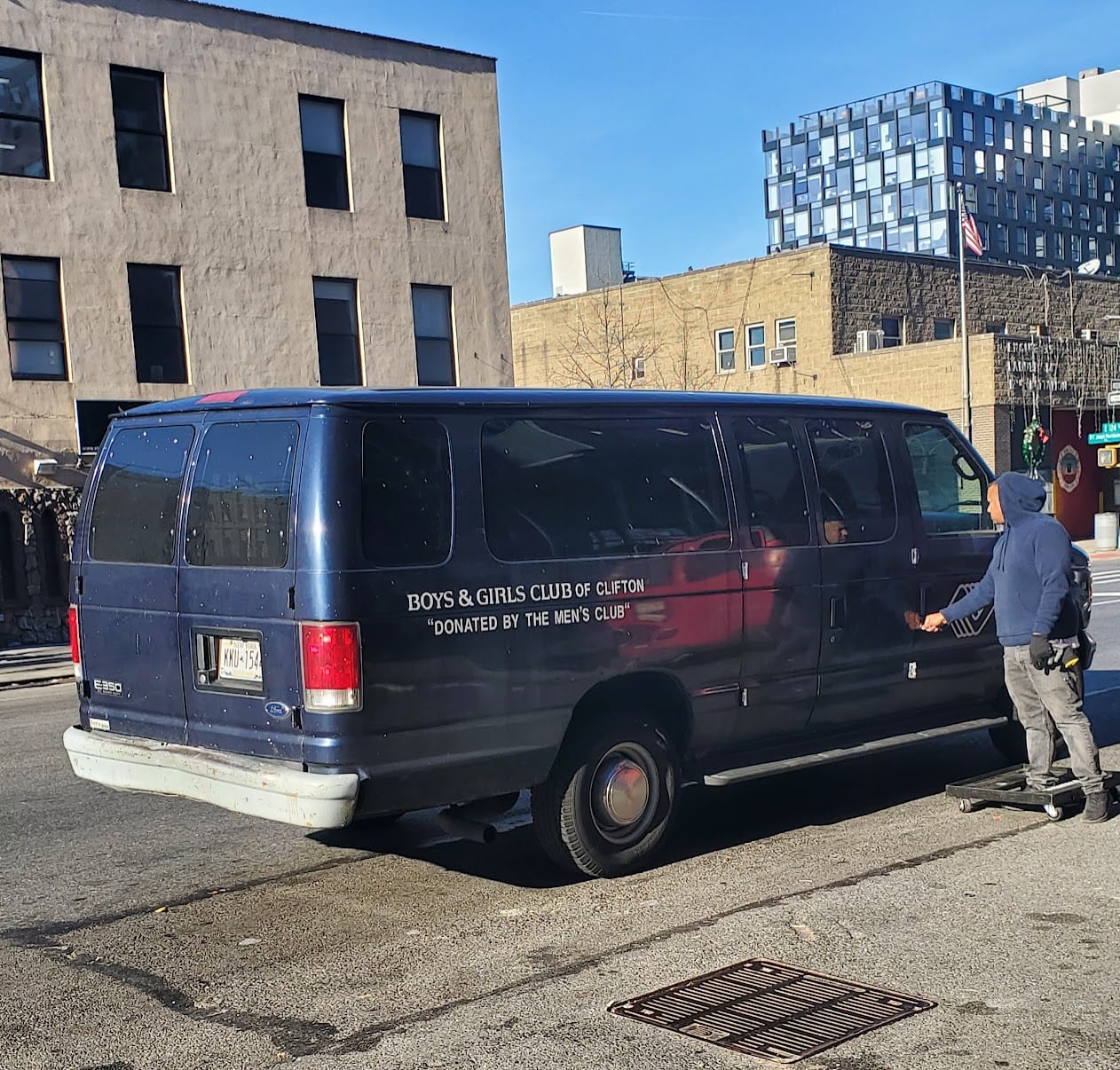 Don't be fooled, this is neither a Boys & Girls Club van from a made-up city ("Clifton"), nor a hastily designed FBI surveillance unit. It's a surplus grocery chariot! I really really wanted to capture that dude wheeling boxes into the store, because I feared you wouldn't believe me.