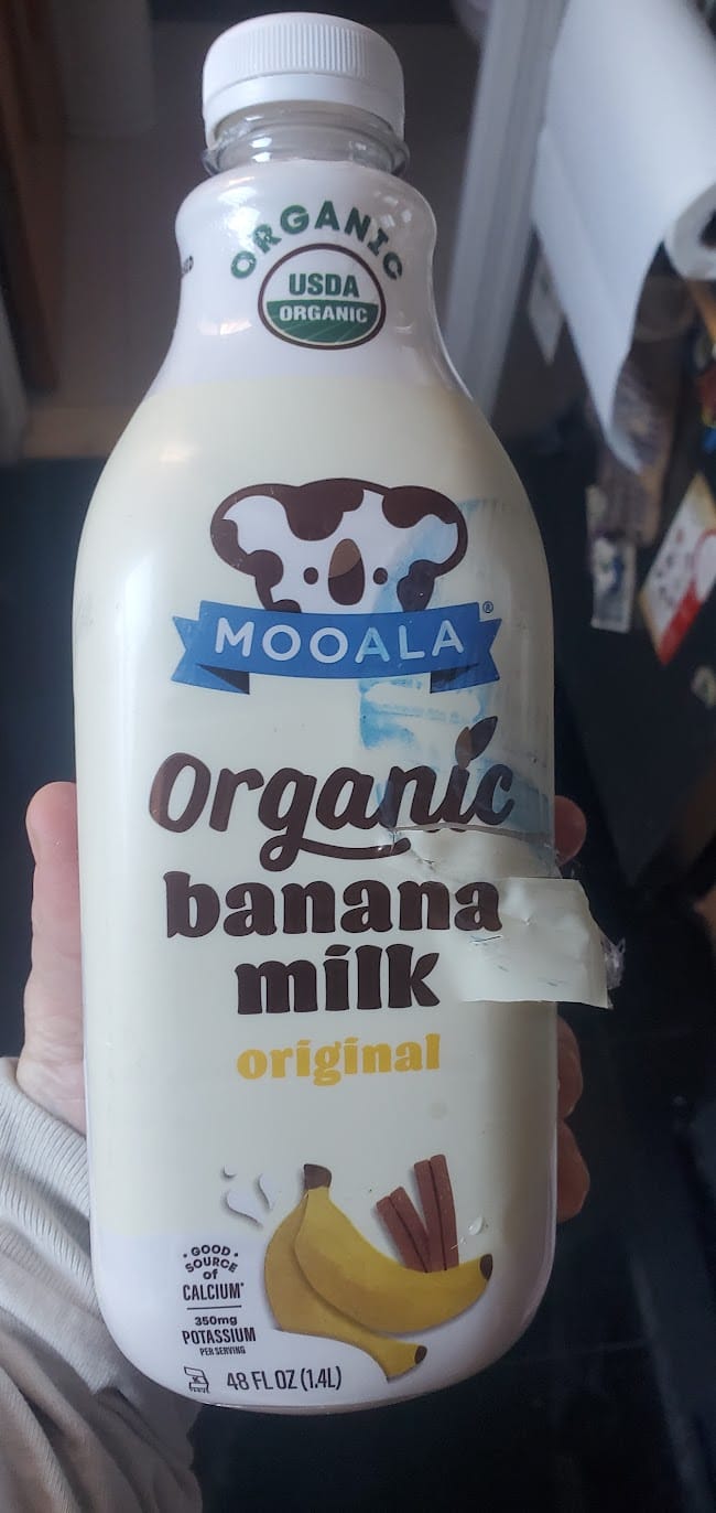 Abby likes plant-based milks for her protein shakes. (Do you even lift, bro?) This one has a distinct creamy flavor, less banana-like than you might imagine. They did add cane sugar which feels like a mistake. It's not a milkshake!