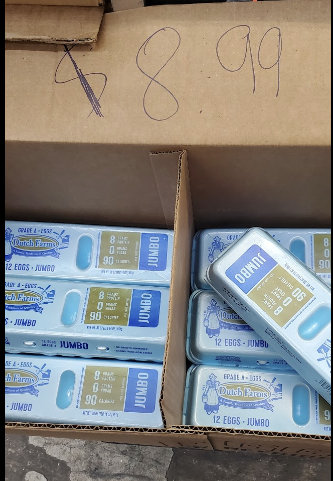 We used to be able to get fancy pastured eggs for $3 a dozen, but it's not 2021 anymore. Weirdly the surplus grocer's egg prices have now surpassed Food Bazaar. Supply chain hijinks.