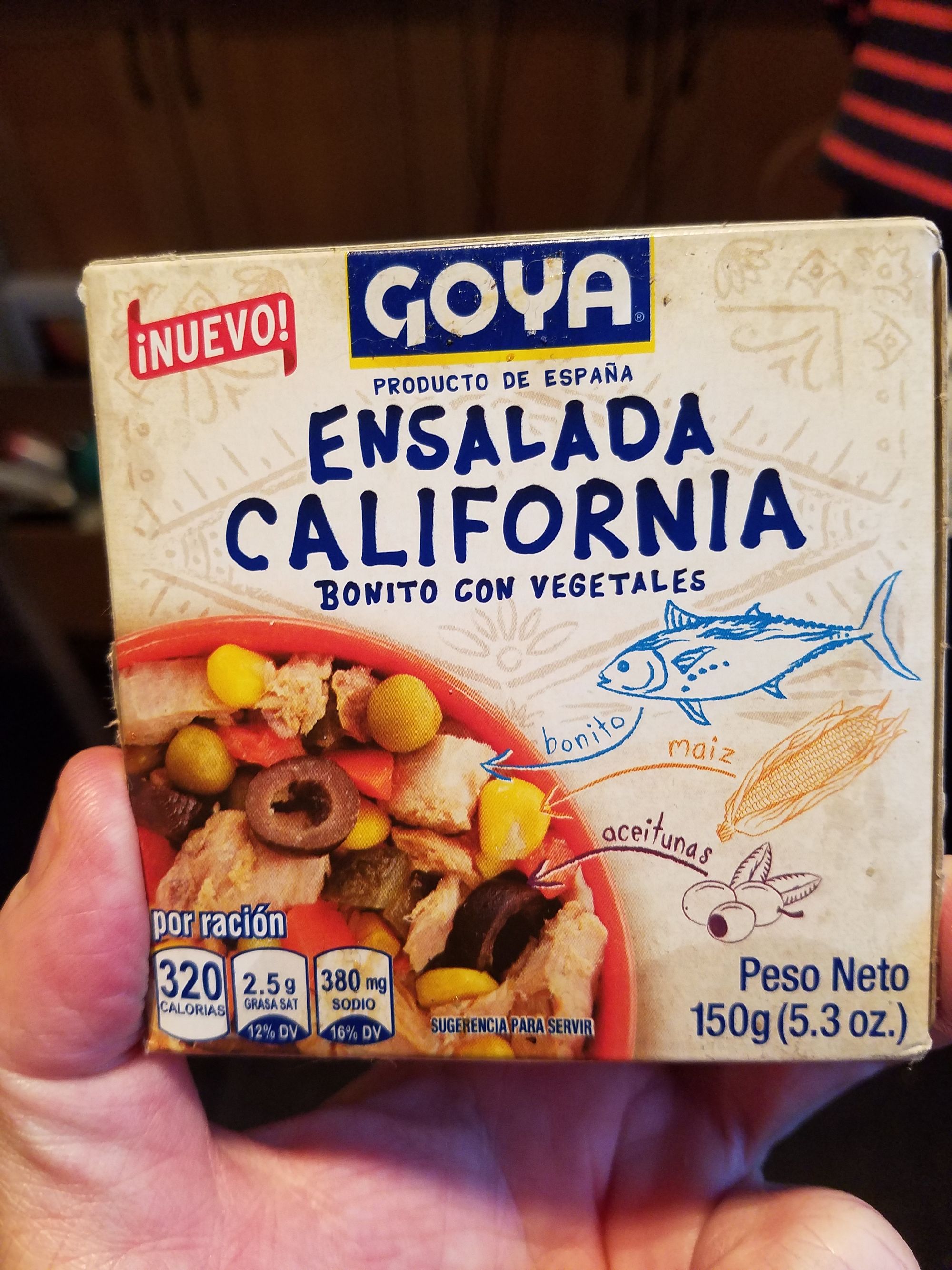 I feel like there are common Goya products like rice, beans, and olive oil, but we get to encounter the company's more novel offerings. These new bonito salads in a tin feel a bit MRE, but they pack mucho flavor and are perfectly portioned pre-workout food. (Also available con mayonesa, aka Ensalada Rusa aka Russian salad.)
