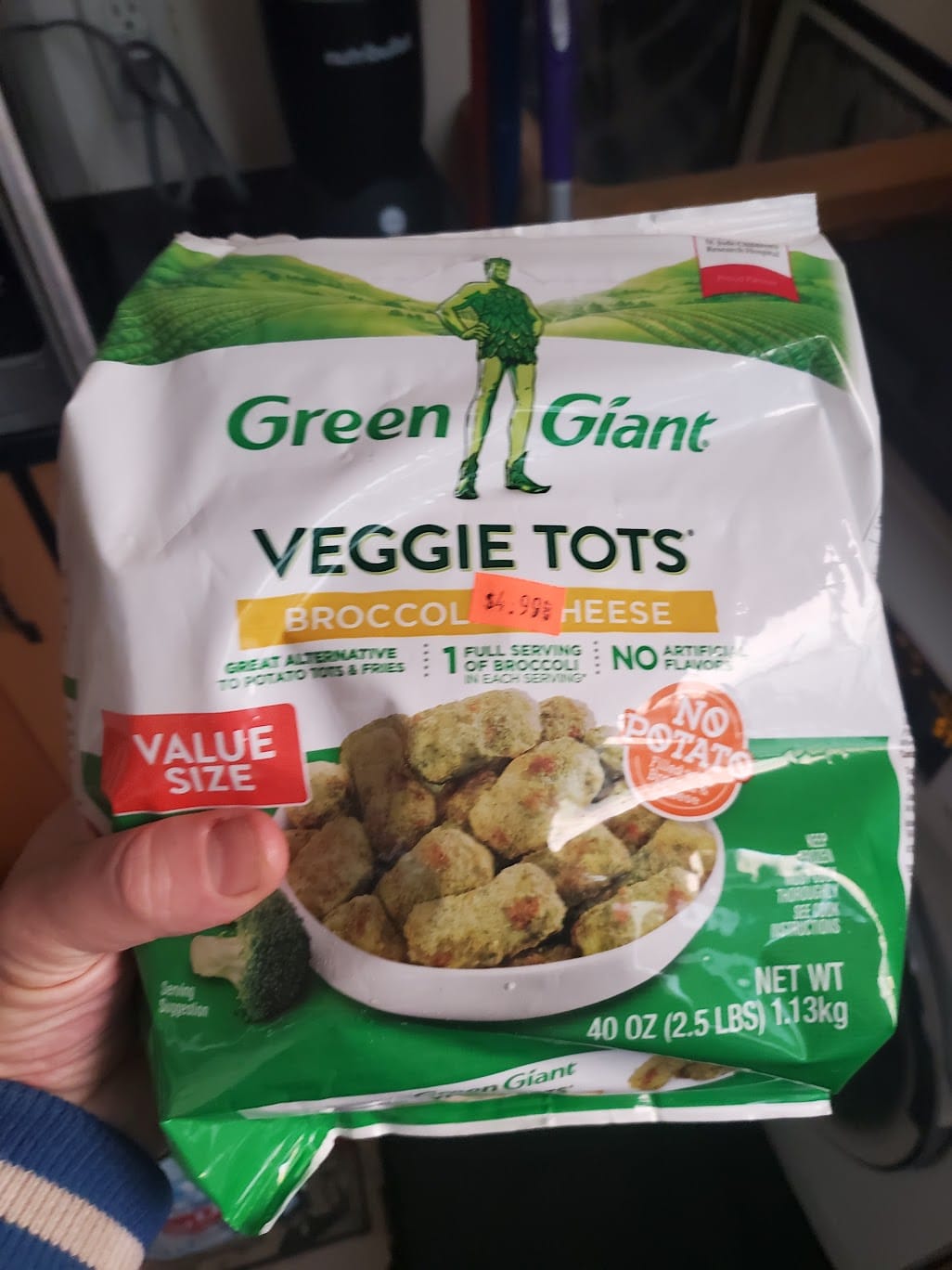 These are pretty good, and I appreciate how virtuous it is to get some bonus broccoli (lol look at the big NO POTATO label). Dipping them in ranch is the move, though Abby accidentally dipped them in Caesar dressing one night after cocktails. The authentic kind of Caesar's, with anchovies and everything. Boy was she startled!