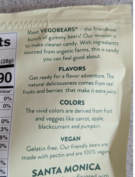 If I want to make myself feel really bad, I can talk about these vegan Swedish gummy bears. I grew up in Los Angeles and am deeply resistant to anything that sells itself as characteristic of a place, it's reductive and cynical. I got the fruity ones.