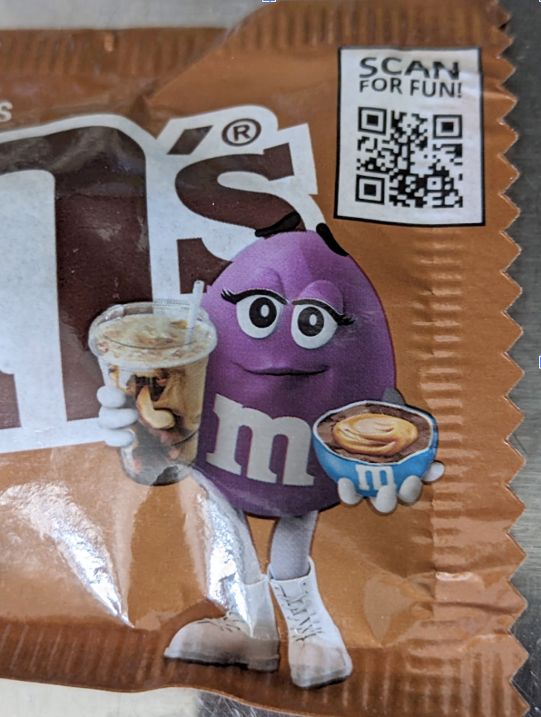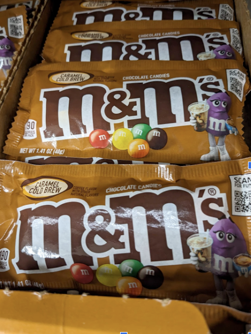 The femme M&M (fem&m?) on the package has a whole "but first, coffee..." thing going on. The product website proclaims "You don't need a straw to enjoy this caramel cold brew coffee treat! Our NEW M&M'S Caramel Cold Brew milk chocolate candy has coffee shop-inspired vibes in bite size pieces." Vibes.
