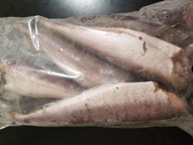 Rough cuts! I thought I was buying a box of filets. Unexpected fins and tails, but hey. We'll make the best of it. (Please don't point out that the box had an accurate picture on it.)