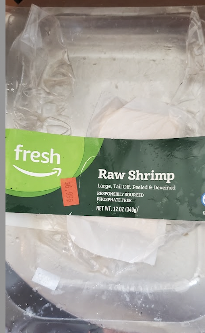 (I cropped my feet out of this photo, which my friend Miranda made me promise to always do.) This Amazon shrimp is perhaps the most cursed item we've ever purchased at the surplus grocer — after defrosting it smelled absolutely rank and was coated in a thick layer of goo. I exchanged it for another package, which was also rancid, so I told the manager. They have a 100% no refunds rule, but I didn't want anyone to get sick!