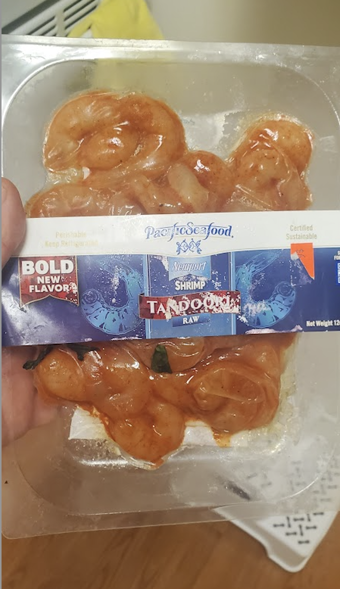 Not all shrimp! This tandoori-spiced item was perfectly serviceable, if a bit salty. I cooked it at my mom's house in Massachusetts.