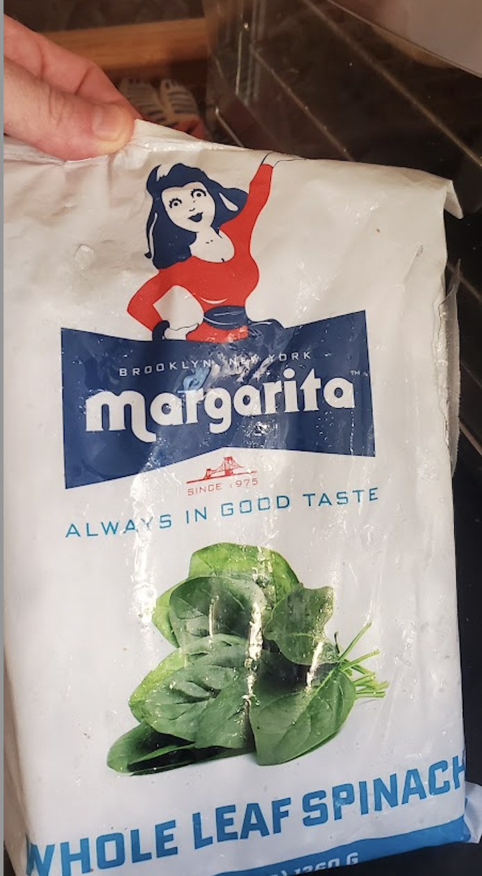 Frozen spinach is almost always chopped, so this was a fun departure. Also that mascot is a stone fox.