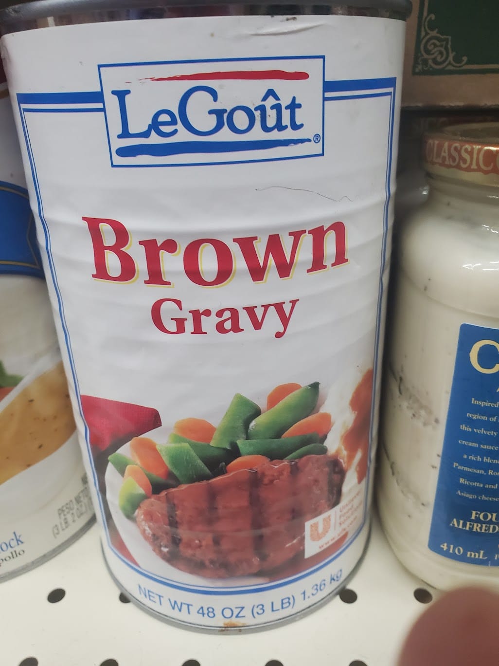 Three pounds of gravy, brown variety, with a brand name that also means "a disease in which defective metabolism of uric acid causes arthritis, especially in the smaller bones of the feet."