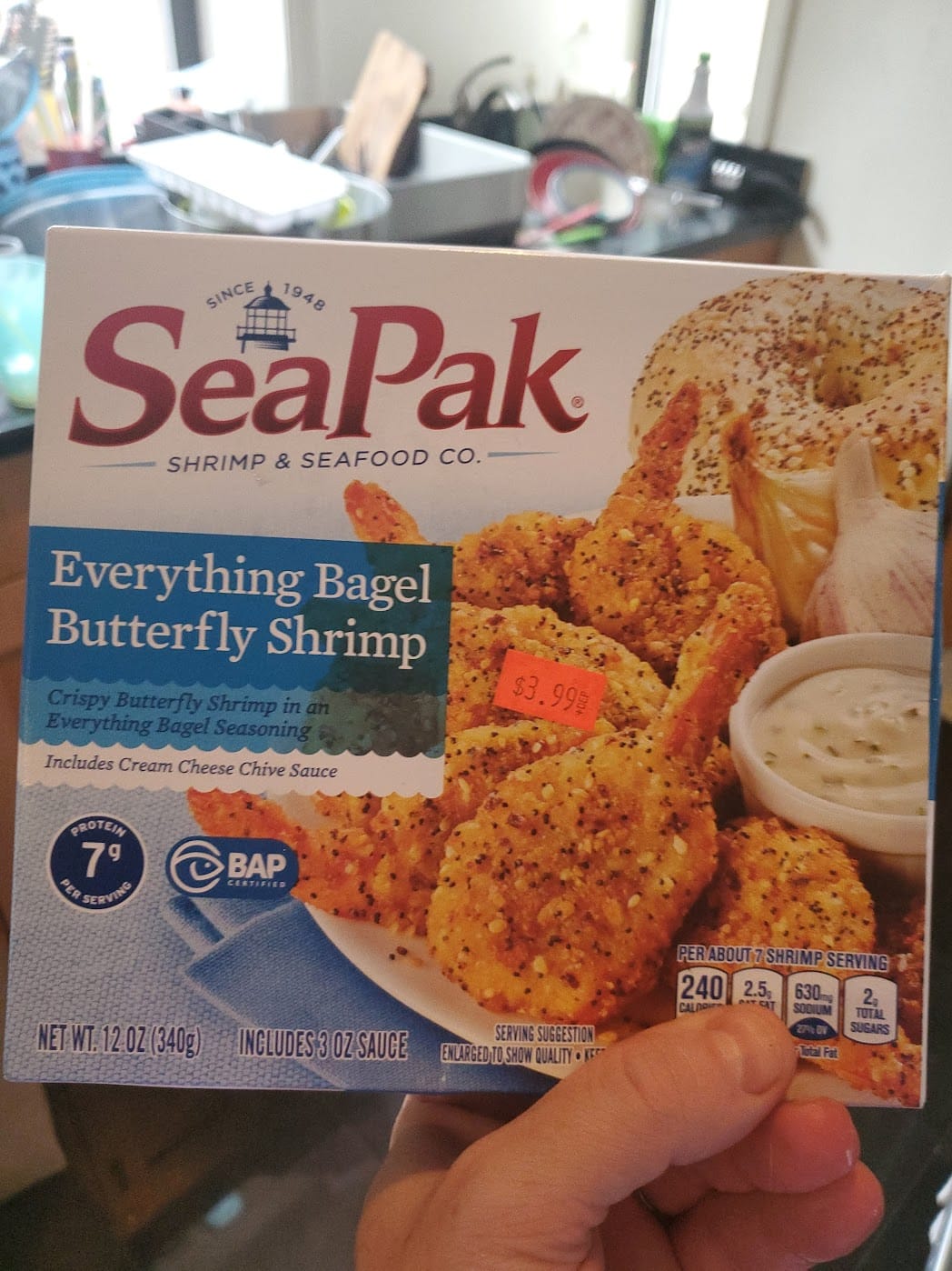 I've already mentioned that SeaPak is a Preferred Haul Brand (TM), but this one feels a little...off. Please note that the dipping sauce is cream cheese/chive.