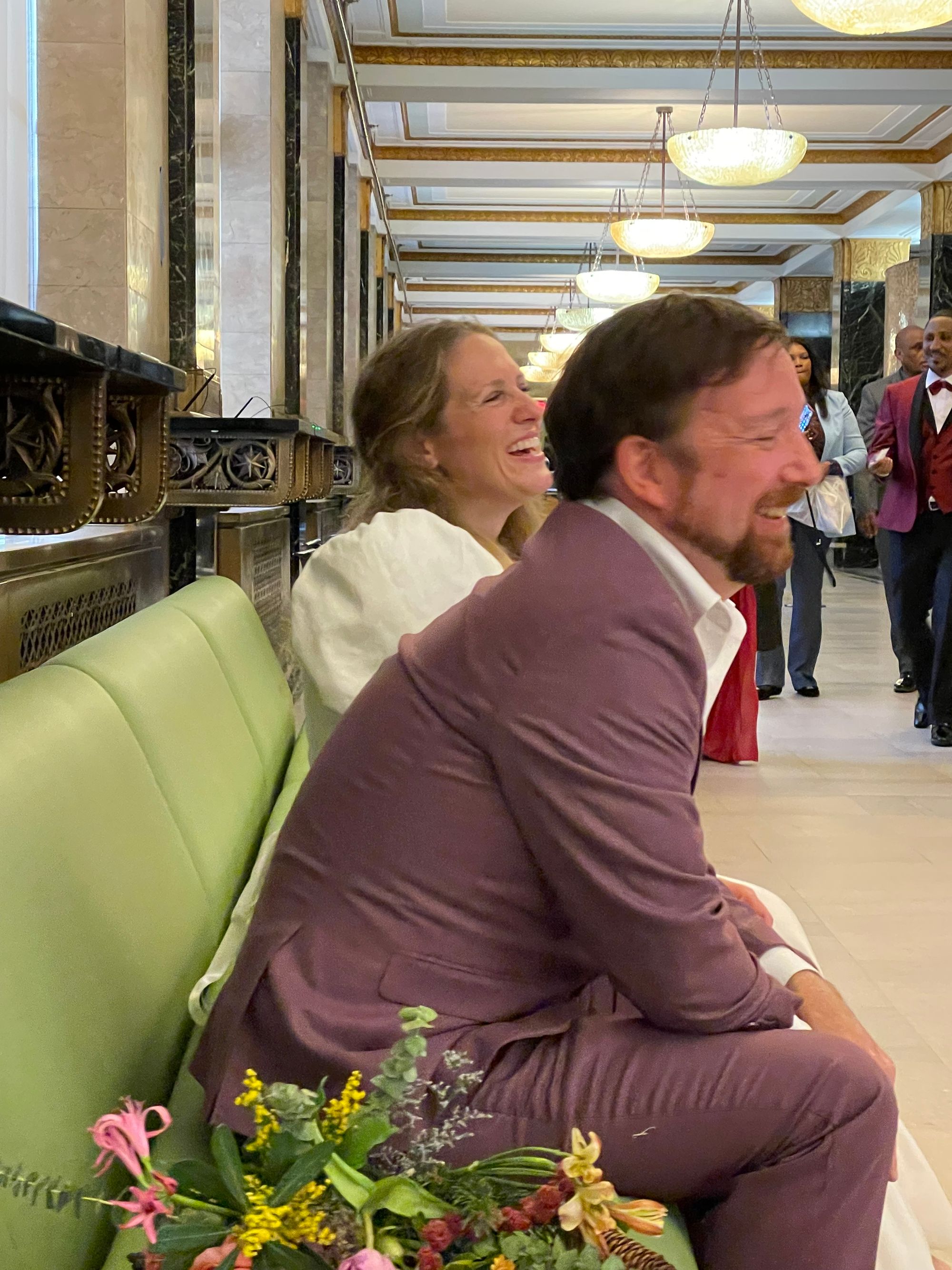 ^Look, it's me and Abby, getting official at City Hall! This was one of three marriages we had this year: with friends in Maine, with family in Western Mass., and with one (1) cousin and one (1) friend on a recent Friday morning in NYC. Each mini-marriage had its own special sauce.