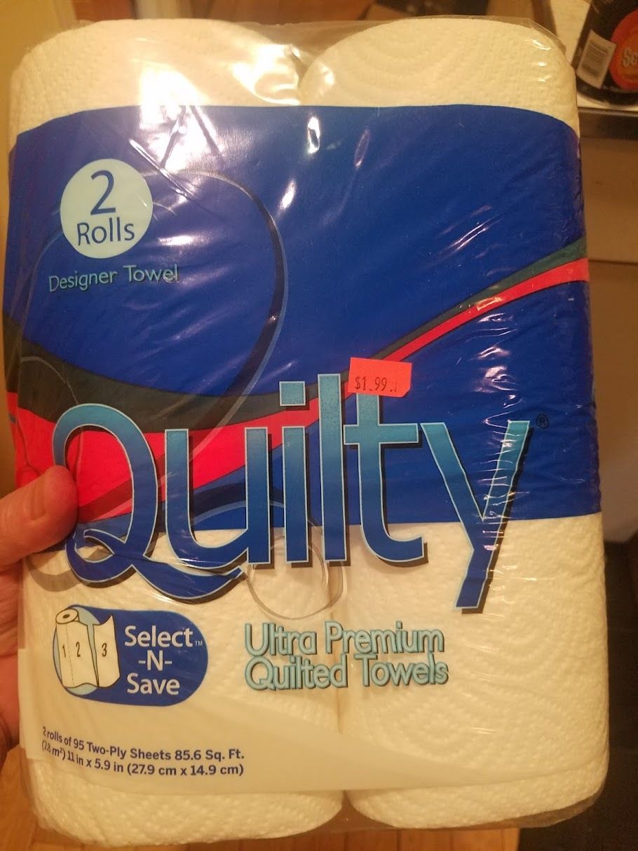 Notably, we went through an extended phase of using paper towels branded with Louisiana State University's logo—Geaux Tigers! Subsequently there was another long stretch when we exclusively used Buffalo Bills paper towels.