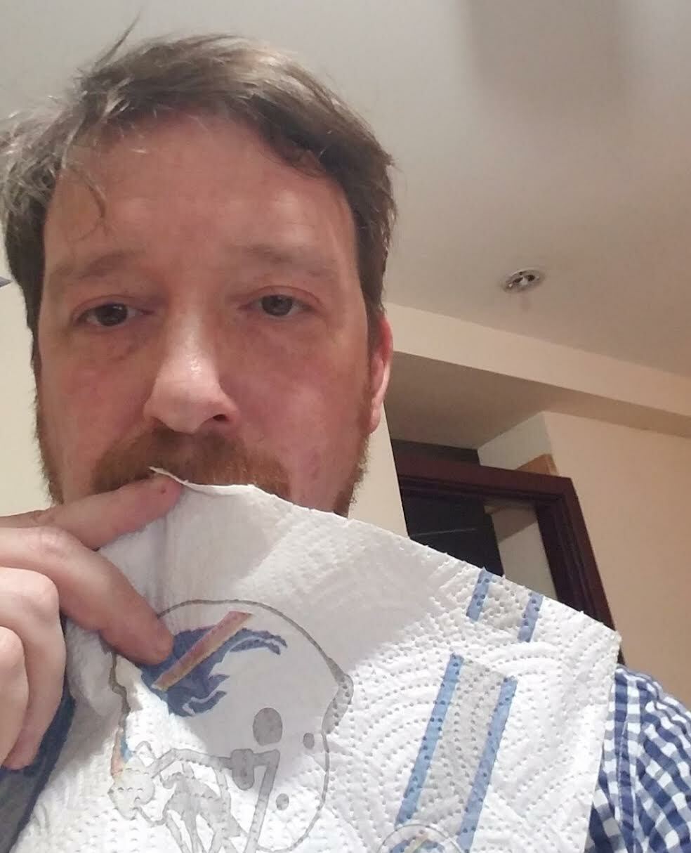 I tweeted about our Bills towels last year, which led to a very sweet thing. Counter contributor/friend of the Haul Charlie asked if I'd mail his buddy a bunch of paper towels for his birthday. And I did! Not everything is trash.