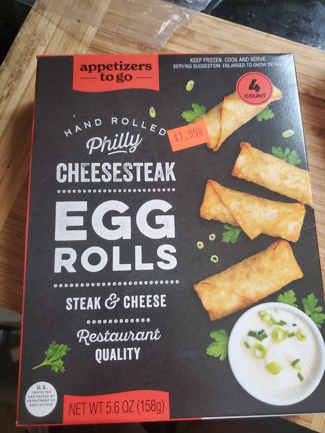 One time I made like 100 homemade steak and cheese egg rolls using fresh dough from the surplus grocer. Abby refused to eat them! She made some crack about "What are we, a Chilis?" and left me to get fat alone. And yet she INSISTED we buy these frozen rolls from the trusted brand "appetizers to go." Divorce beckons.