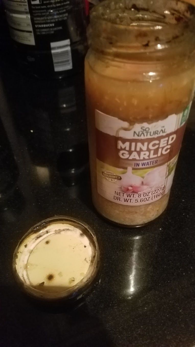 (I don't like buying jarred garlic because it seems lazy but Abby insisted, though I'm not saying the mold is her fault.)