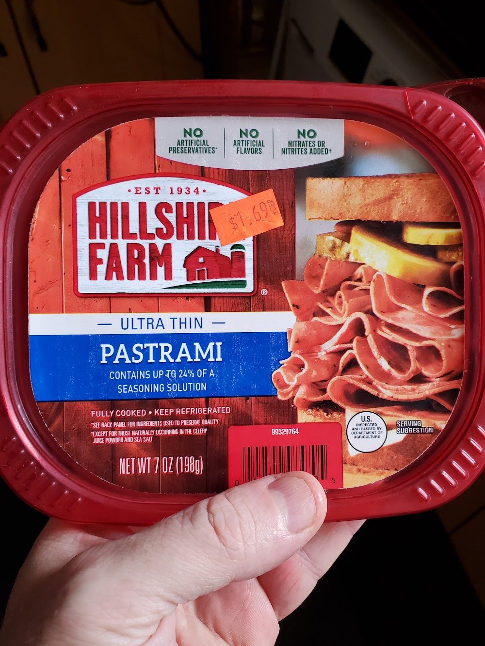 Abby is only familiar with pastrami in its chunkier form, the filler of (overrated IMO) iconic, overstuffed Jewish deli sandwiches. I explained to her that this commodified version is more like honey ham or roast beef, but shares a similar spice profile. She nodded, enthralled as always with my informational lectures.