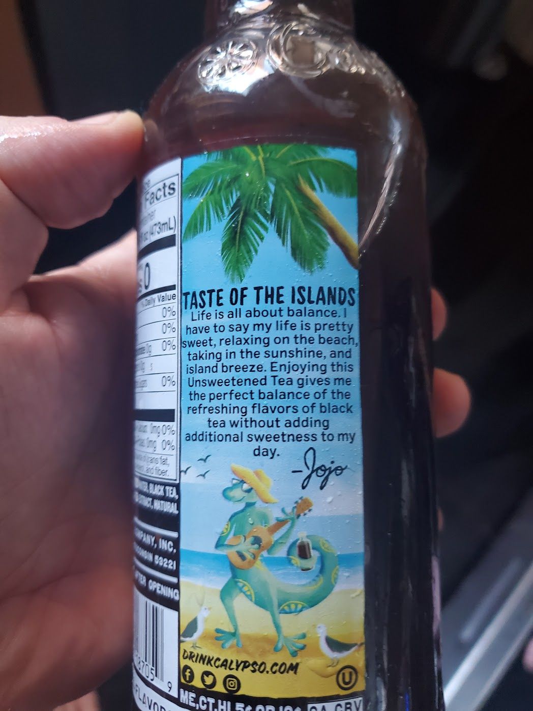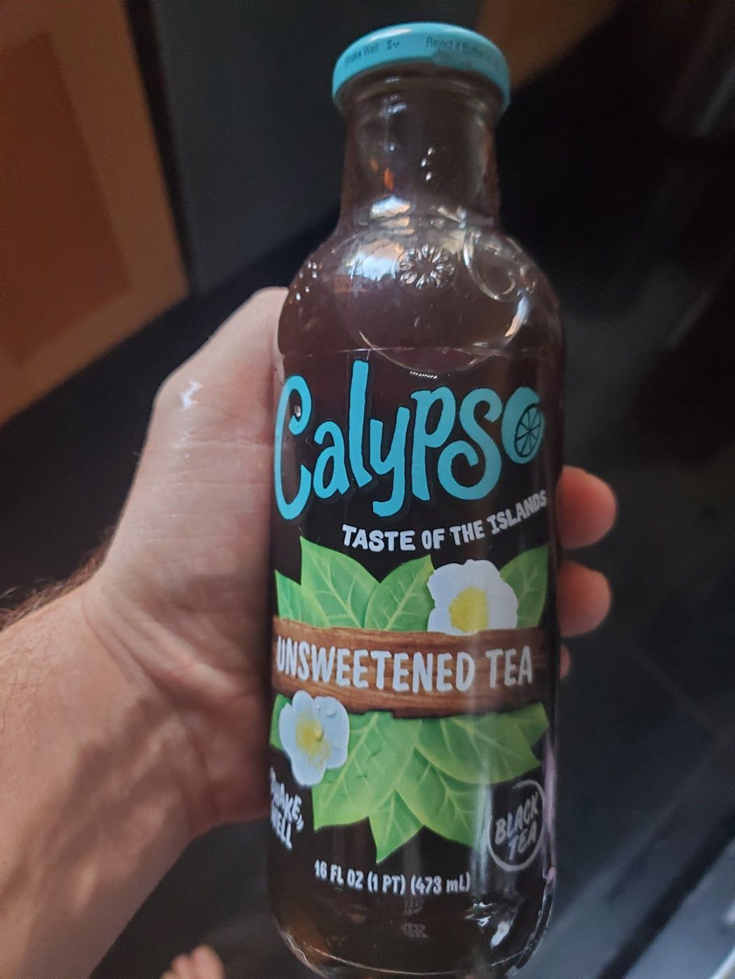 I can't believe how delicious this tea is! The surplus grocer has tons of it in stock, and they sell these bottles 2 for $1. I thought it would be mehmeh, but it's strong and has a lot of real tea flavor. Better than Gold Peak or Lipton or whatever. It's been a summer sizzler for me and Abby.